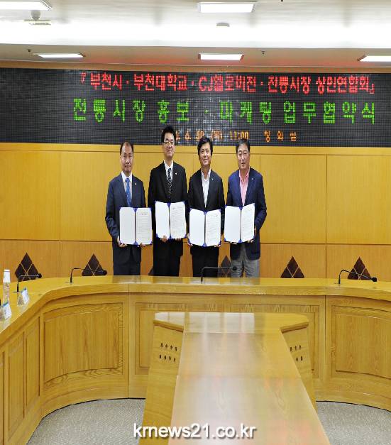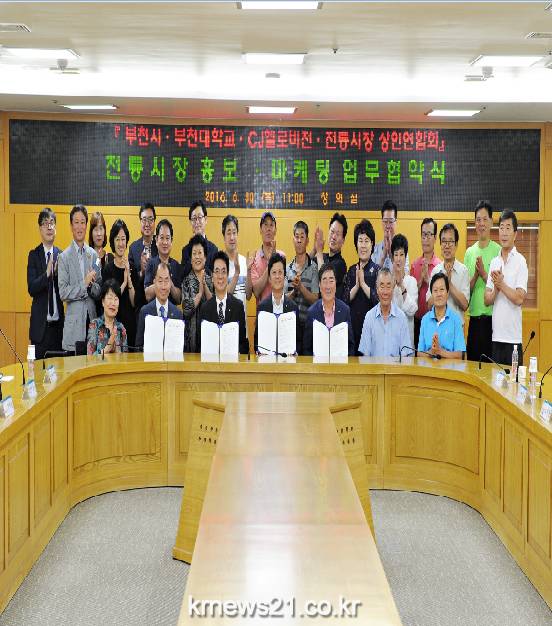 부천시는 부천대학교 ,CJ헬로비전, 전통시장 상인연합회와 30일 오전 11시 시청 창의실에서 전통시장 활성화를 위한 홍보 · 마켓팅 업무협약을 체결했다.