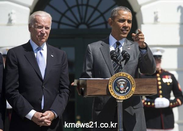 ▲ ⓒSAUL LOEB / AFP조 바이든 미국 부통령(왼쪽)과 버락 오바마 대통령