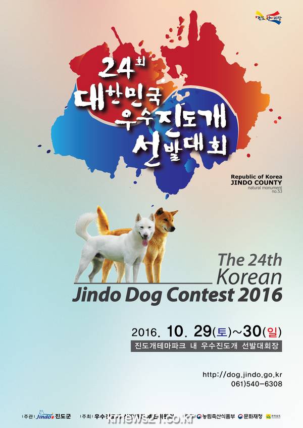 군은 천연기념물 제53호 진도개의 우수성을 알리기 위해 오는 10월 29일부터 10월 30일까지 2일동안 진도개 테마파크 일원에서 개최되는 제24회 대한민국 우수 진도개 선발대회 포스터를 확정했다.