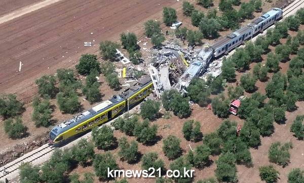 이탈리아 남부 풀리아 주(州)의 안드리아와 코라토 사이 단선 촐로에서 12일 오전 11시 30분께 (현지시간) 통근열차 2량이 정면 충돌하는 사고가 발생했다.