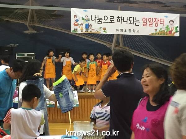 하의면 웅곡리에 위치한 하의초등학교는 지난 12일 일일장터를 열었다. 전교학생회에서 학생들의 건의사항으로 추진된 이번 행사에서는 유치원 아이들부터 6학년까지 모두가 참여해 봄부터 키워낸 농작물과 집에서 사용하지 않는 책, 그리고 이제는 키가 커서 못 입는 옷을 판매했다.
