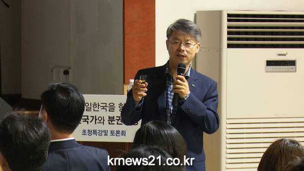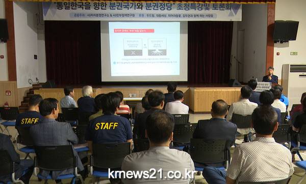 강연에서 민 구청장은 ‘균형발전’과 ‘분권’의 개념을 명확히 구분했다. 민 구청장은 “균형발전론은 ‘중앙’을 전제하면서 중앙에 쌓인 문제를 ‘지방’을 통해 해결하려는 불순한 동기까지 갖고 있다”며 “단기적으로 취해야 할 정책이 균형발전이지만, 궁극적으로 분권을 쟁취해야 한다”고 밝혔다.