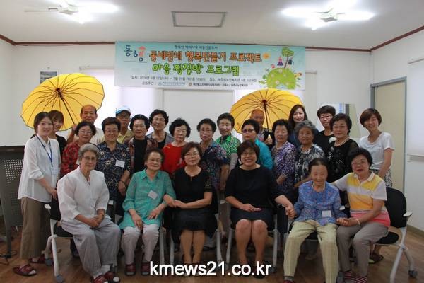 여주시정신건강증진센터(센터장 임정희)와 여주시노인복지관(관장 이석자)이 공동주관하여 진행한 동네방네 행복만들기 프로젝트 ‘마음찜질방’ 프로그램의 수료식이 21일 진행되었다.