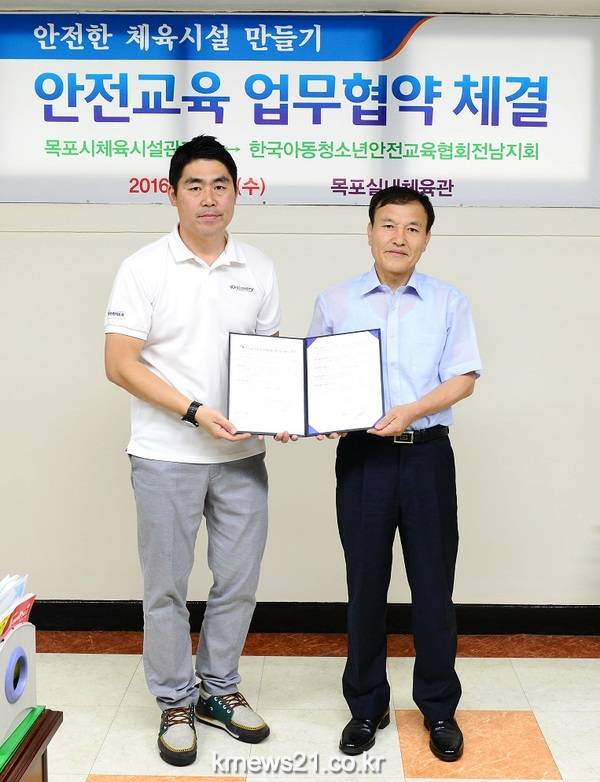 목포시가 지난 20일 한국아동청소년안전교육협회 전남지회(지회장 강명선)와 안전한 체육시설 관리 및 이용 시민들의 안전 환경 구축을 위해 상시 안전교육을 실시하기로 하고 상호협력을 위한 협약을 체결했다.