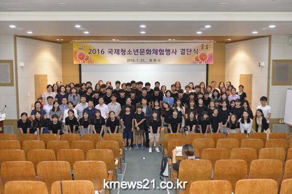 포천시(시장 서장원)는 지난 21일 중앙도서관에서 관내 중학생 50여명과 학부모 및 관계자가 참석한 가운데 국제적 감각과 글로벌 리더십 함양을 위한 ‘2016 국제청소년 문화체험행사 결단식’을 개최했다.