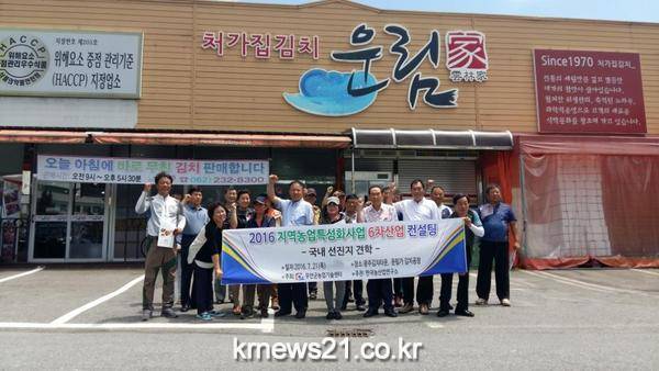 선진지 견학은 광주김치타운과 김치가공공장(운림가)을 방문해 토종 갓김치 가공시설에 대한 시설조성 및 운영 노하우를 습득하고, 이를 기반으로 현지 여건에 맞는 경쟁력 있는 사업법인의 공동소득사업 추진을 위한 사업 아이디어를 창출하는 시간을 가졌다.
