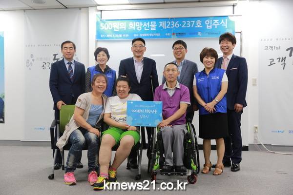 2016년 7월 25일(월), 성남시장애인종합복지관(관장 정의철)과 장애인먼저실천운동본부, 삼성화재가 공동 주최한 장애인 생활환경개선 프로젝트 ‘500원의 희망선물’ (236‧237호) 입주식이 삼성화재 성남지역단에서 진행되었다.