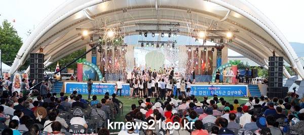 이어 축제추진위원장과 화동 대표가 제44회 어린이와 함께하는 강진청자축제의 화려한 개막을 알렸다.