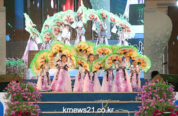 축제 성공기원 영상소개와 청자공모전, 민화대전 대상 시상식이 이어졌고‘어린이와 함께하는 강진청자축제’를 환영하는 의미로 강진 관내 호산나어린이집 아이들의 부채춤, 퓨전국악‘배 띄워라’, KBS어린이합창단의 공연이 펼쳐졌다.