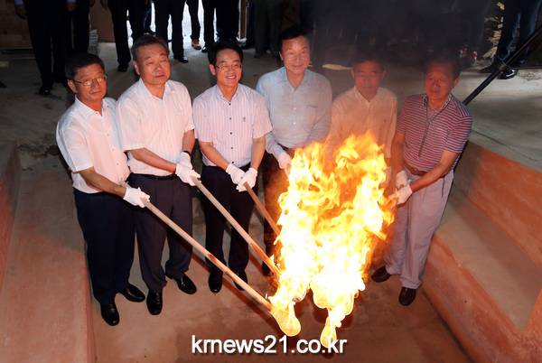 개막식에 앞서 강 군수와 손 전 대표, 황 의원, 김 전남부지사 등 주요 귀빈들은 고려청자와 강진청자축제의 전통, 역사를 되새기는 차원에서 화목가마 불 지피기에 참석해 의미를 더했다.