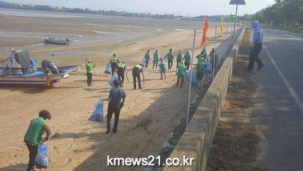 무안경찰서(서장 이삼호) 현경파출소에서는 8월 1일 휴가철을 맞아 해수욕장 해안주변에 집적된 해양쓰레기 일제 수거를 위해 새마을부녀회와 합동으로 무안 홀통해수욕장을 찾아 대청소를 실시하였다.