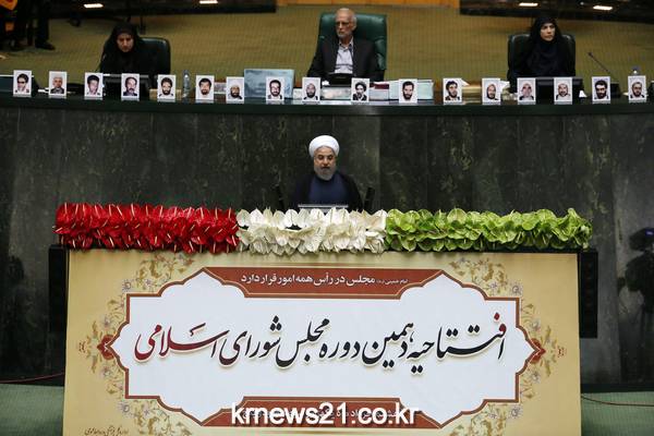 ▲ 하산 로하니 이란 대통령이 지난 5월 28일(현지시간) 테헤란 의회에서 연설하고 있는 모습 ATTA KENARE / AFP[제공자ⓒ 뉴스21통신. 무단전재-재배포 금지.] 하산 로하니 이란 대통령이 2일(현지시간) 미국이 핵협정으로 인해 제공된 기회를 낭비하고 있다며 양국이 더 긴밀한 협력을 할 수 있음에도 이를 막고 있다고 말했다.