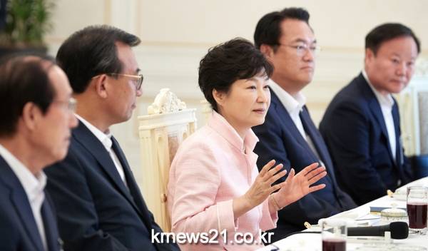 이에 이정현 새누리당 당대표는 전당대회가 끝나자마자 청와대로 초청해 준 것에 대해 굉장히 고맙게 생각한다는 인사말을 전하며, 전기요금 누진제를 당·정·청이 긴급 민생현안 문제로 논의해 대책을 마련하자고 건의했다.