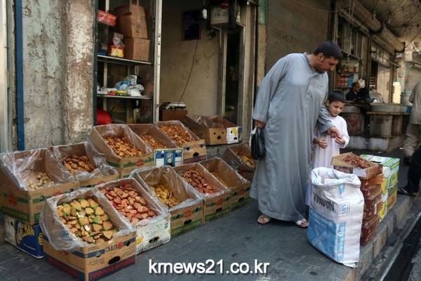▲ AFP / Thaer Mohammed[제공자ⓒ 뉴스21통신. 무단전재-재배포 금지.]시리아 반군 지역인 알레포 북부 지역의 한 시장에서 과자를 구입하고 있는 사람들