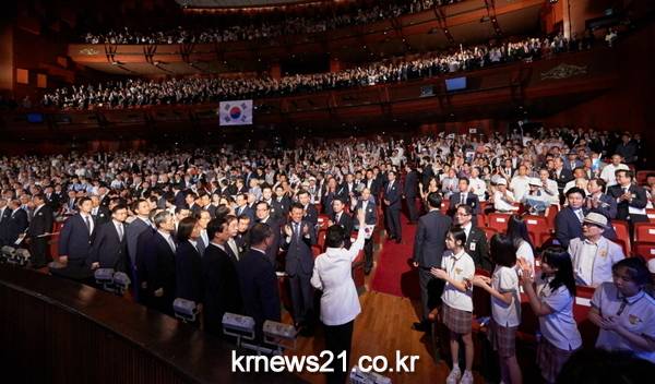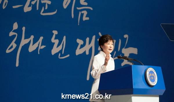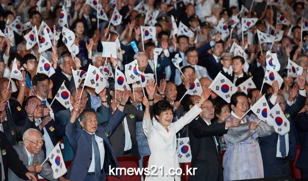 박근혜 대통령이 15일 오전 서울 종로구 세종문화회관에서 열린 제71주년 광복절 경축식에 참석해 경축사를 하고 있다.