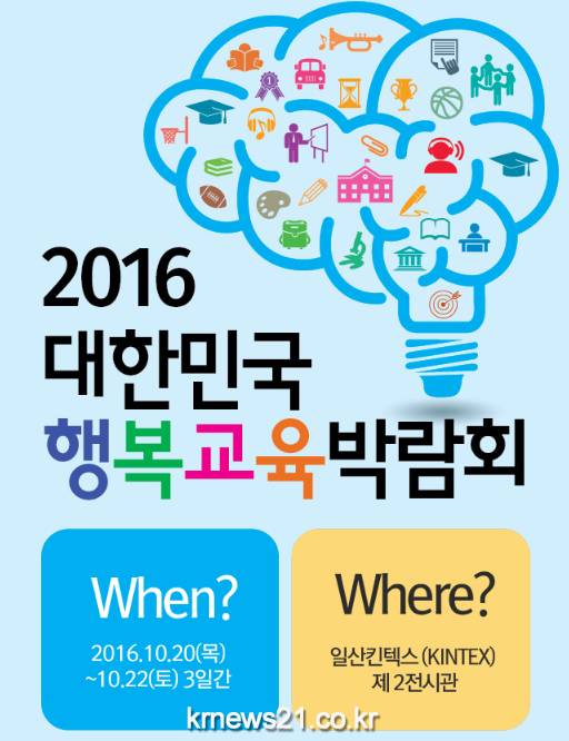 ‘2016 대한민국 행복교육박람회’는 교육부 주최로 자유학기제, 공교육정상화 등 6대 교육개혁 과제의 성과를 국민들에게 홍보하고, 그동안의 성과를 공유하는 ‘교육축제의 장’이라 할 수 있으며, 매년 20여만명의 학생, 교사 및 학부모들이 참여하고 있다.