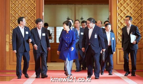 박근혜 대통령이 17일 오후 청와대에서 열린 전국 시·도지사 오찬에서 인사말을 하고 있다.