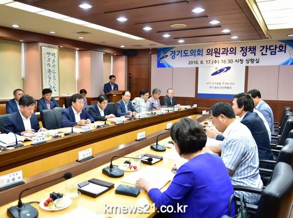 이번 정책간담회는 제9대 경기도의원 하반기 원구성과 함께 시정 주요현안에 대해 공유하고, 2017년도 도 예산확보 등을 위해 상호 협력하기 위한 취지로 마련됐다.