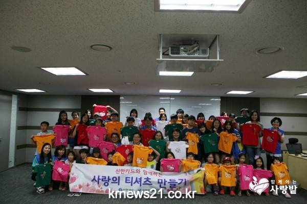 신한카드 아름인 봉사단 직원 40여명은 20일, 여의도 신한은행 백년관에서 국내·외 저소득층 아동들을 위한 ‘사랑의 티셔츠 만들기’ 캠페인에 참여했다.