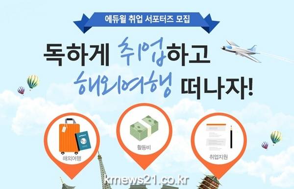 ‘에듀윌 취업 서포터즈’는 8월 18일부터 28일까지 열흘간 모집 중이며, 31일 합격자 발표를 통해 확정된 서포터즈는 오는 9월 1일부터 활동하게 된다.