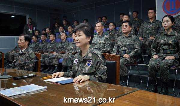 박근혜 대통령은 24일 오후 UFG 연습을 실시하고 있는 중부전선 전방군단을 방문하여 군사대비태세 점검 및 부대 장병들을 격려했다.