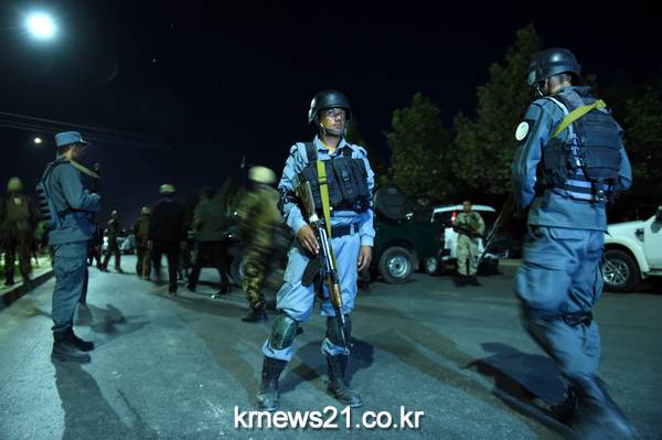 ▲ 아프가니스탄 수도 카불에 위치한 아메리칸 대학에서 24일(현지시간) 수류탄과 총격이 발생해 1명이 사망하고 26명이 부상했다. 사진은 아프간 보안군이 공격 현장에 나와있는 모습.WAKIL KOHSAR / AFP[제공자ⓒ 뉴스21통신. 무단전재-재배포 금지.]아프가니스탄 수도 카불에서 24일(현지시간) 아메리칸 대학을 겨냥한 무장세력의 공격이 10시간 만에 공격자 2명이 사망하면서 끝이났다.