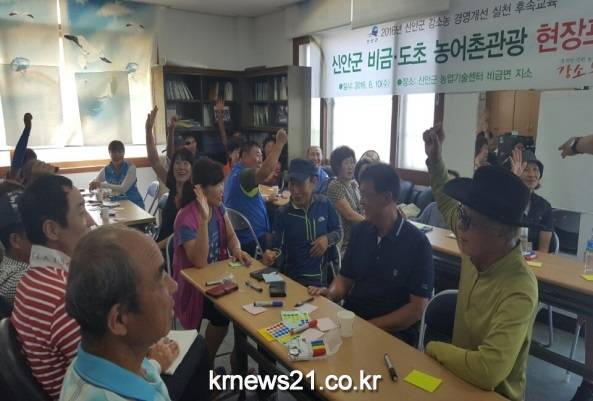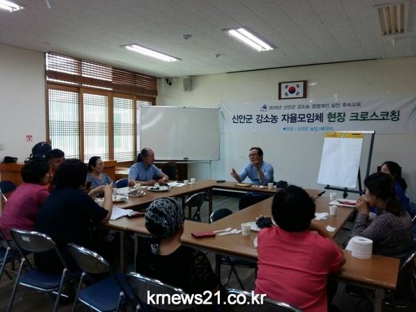 지난 7월 북부권 지도, 증도, 임자면을 대상으로 실시한 강소농 크로스 코칭은 8월 비금면과 압해읍을 대상으로 실시하였으며, 이론교육을 현장에 접목시켜 서로의 의견을 제시하고 토론을 통해 강소농의 길을 열었다.