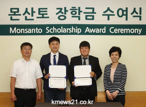 세계적인 농업기업 몬산토 코리아(대표 이남희)는 국내 농업 인재 양성을 지원하기 위해 서울대 농업생명과학대학 식물생산과학부 대학원생 2명에게 장학금을 전달했다.