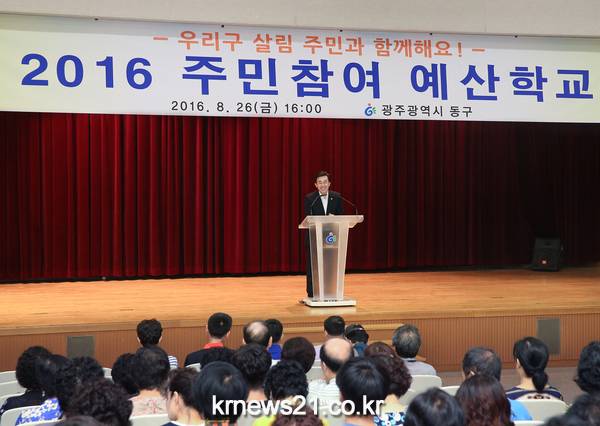 광주 동구(청장 김성환)가 우리 동네 살림살이 결정에 주민이 직접 참여하는 주민참여예산제도의 일환으로 26일 주민참여예산학교를 개최했다.
