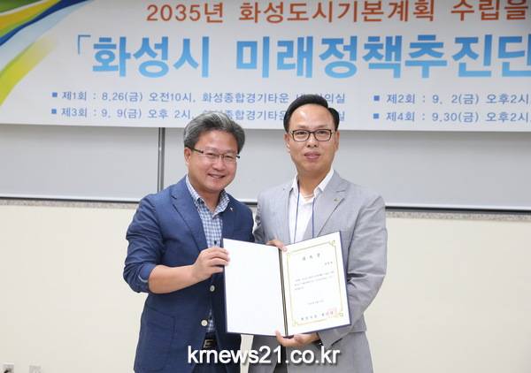 이날 행사에는 미래정책추진단으로 위촉된 시민위원을 비롯해 채인석 화성시장과 서재일, 조병수 화성시의회 의원 등 120여 명이 참석했다.