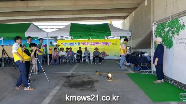 이날 ‘장성 황룡시장 어르신 교통안전 한마당’이라는 현수막이 걸린 부스 중앙에는 푸르른 느티나무를 배경으로 한 교통안전 실천 포토존이 설치됐고, 시원한 그늘막 밑에는 어르신들을 위한 아늑한 휴식공간이 마련됐다.