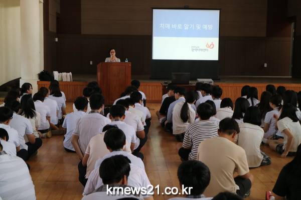 주영백 교장은 “치매 교육을 통해 교직원 및 학생들의 인식개선이 이루어지고 특히나 성장하는 학생들의 인성교육에도 큰 도움이 될 것”이라고 말했다.