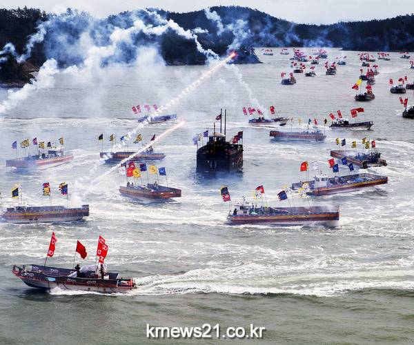특히 어번기를 피해야 한다는 어민들의 요청에 따라 축제 시기를 한 달 가량 앞당긴 만큼 해전 재현에 참가하는 어민들도 한결 가벼운 마음으로 연습에 참가, 축제 분위기를 한층 끌어올리고 있다.