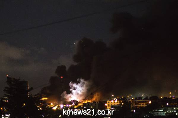 ▲ 8월 31일(현지시간) 아프리카 가봉 리브르빌 국회의사당 건물에서 화재로 연기가 치솟고 있다.MARCO LONGARI / AFP[제공자ⓒ 뉴스21통신. 무단전재-재배포 금지.]대선을 치른 아프리카 가봉에서는 알리 봉고(57) 현 대통령이 재선에 성공한 후 폭력사태가 발생하고 있다.