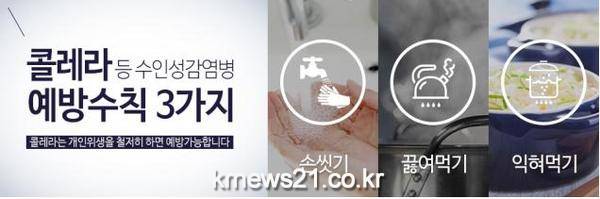 보건소는 예방을 위해 ▲30초 이상 올바른 손씻기 ▲물은 끓여먹기 ▲음식 익혀먹기 ▲하루 수차례 쌀뜨물 같은 수양성 설사 증상 발현시 즉시 의료기관 진료받기 ▲식품접객업소는 종사자 등 개인위생관리 준수 및 수족관 청결 유지 등을 강조했다. 또 의료기관에는 수양성 설사 환자 내원시 콜레라 검사를 실시하고 지체없이 보건소에 신고할 것을 당부했다.