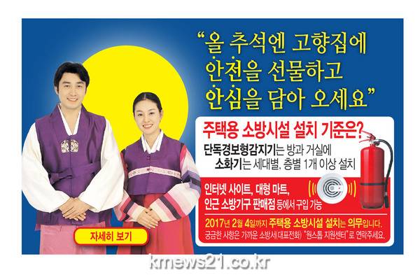 경기도 포천소방서(서장 임원섭)에서는 추석을 맞아 주택용 소방시설인 단독 경보형 감지기와 소화기 선물하기 운동을 전개하고 있다고 밝혔다.