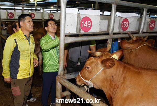 지난 4일 어둠이 채 가시지 않은 이른 새벽 한우산업의 동향을 살피기 위해 우시장을 방문한 강진원 강진군수는 “우리군은 그동안 한우산업을 육성하기 위해 다각적으로 노력해왔다”면서 “한우개량이나 생산비 절감 등 생산분야의 노력이 한우산업의 ‘줄기’라면, 활발한 유통은 한우산업의 ‘꽃’이다.