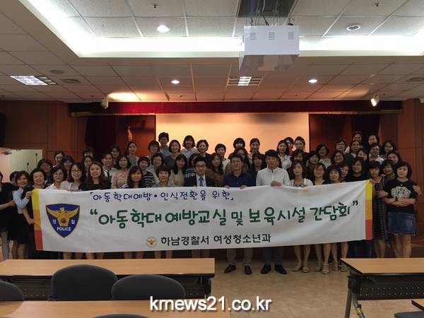 하남경찰서는(경찰서장 정경택) 지난 6일 하남시 종합사회복지관에서 아동학대 근절을 위해 어린이집 연합회 회장 및 임원 이하 60여명을 대상으로 하반기 아동학대 예방교육을 실시하였다.
