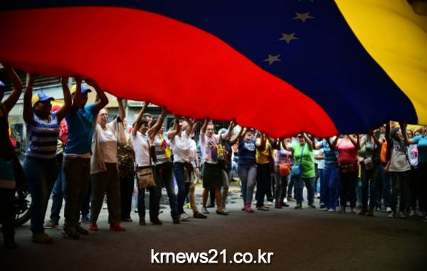 계속되는 반(反) 마두로 시위 니콜라스 마두로 베네수엘라 대통령의 소환 투표를 요구하며 시위를 하고 있는 시민들.