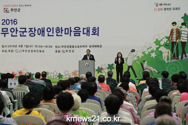 사단법인 무안군장애인협회(협회장 함성장)가 주관하고 무안군(군수 김철주)이 후원한 ‘2016 무안군 장애인 한마음 대회’가 지난 7일 무안스포츠파크 체육관에서 성대하게 개최됐다.