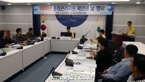 무안군(군수 김철주)은 지난 20일 군청 재난종합상황실에서 2016년도 제3분기 중점관리자원 확인의 날 행사를 가졌다.