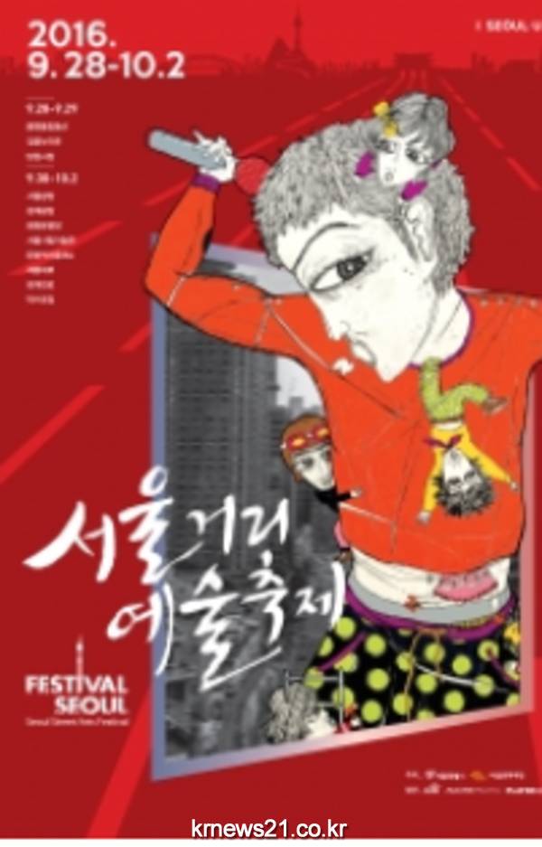 서울문화재단(대표이사 주철환)이 서울특별시와 함께 주최하는 ‘서울거리예술축제2016(舊 하이서울페스티벌, 예술감독 김종석)'을 9월 28일(수)부터 10월 2일(일)까지 서울광장, 청계광장, 광화문 광장 등 서울 도심과 마을 곳곳에서 개최한다.
