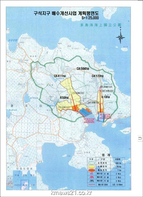 구석지구는 수혜면적 78㏊로 농경지가 만조위의 바닷물 수위보다 낮아 우기 시 배수가 안 되어 농경지가 침수되는 등 영농에 큰 차질을 빚고 있는 곳이다. 이번 배수개선 사업은 신우철 완도군수가 지난해 6월부터 농림축산식품부와 전라남도를 방문해 본사업의 조기착수 필요성과 당위성을 설명하고 지원을 건의해 이뤄졌다.