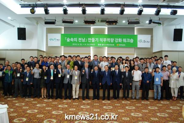 전라남도는 숲속의 전남 만들기 협의회 위원과 시군 공무원 등 200여 명이 참석한 가운데 ‘숲 속의 전남’ 만들기 관계자 직무 역량 강화 워크숍을 나주 골드스파에서 지난 23일까지 2일간 개최했다.