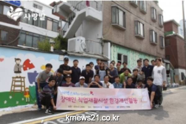 24일 SE이엑스티 임직원 봉사단은 실천하는 NGO 함께하는 사랑밭과 함께 구로구 소재 장애인 재활교육 시설인 엠마오의 집에서 도배, 장판 및 벽화그리기 봉사활동 등에 참여했다.