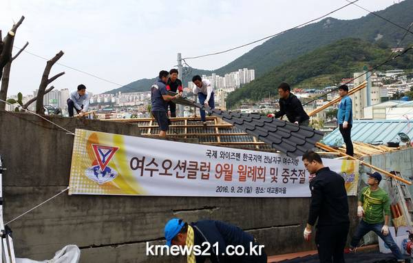 여수시 대교동에서는 지난 25일 국제와이즈멘 오션클럽(회장 노화성) 사회봉사단과 함께 홀로사는 어르신 가정을 찾아 지붕개량 및 외벽 도색작업 등 집수리 봉사활동을 펼쳤다.