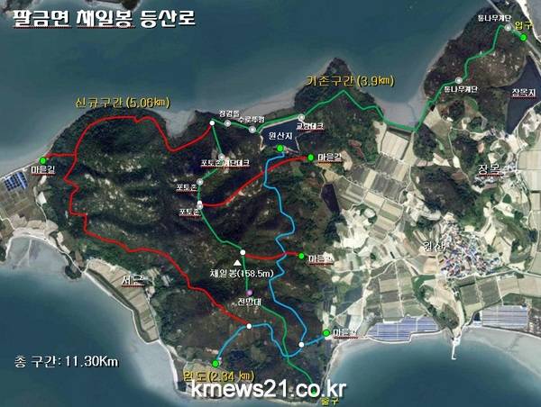 팔금 선학산(159m) 등산로는 총연장 11.3km(기존3.9, 신규5.06, 임도2.34)로 기존코스인 장목지-채일봉-원산마을-서근마을 까지 약 2시간이 소요되며, 2014년도에 전국섬 등산대회를 성황리에 개최한바 있다.