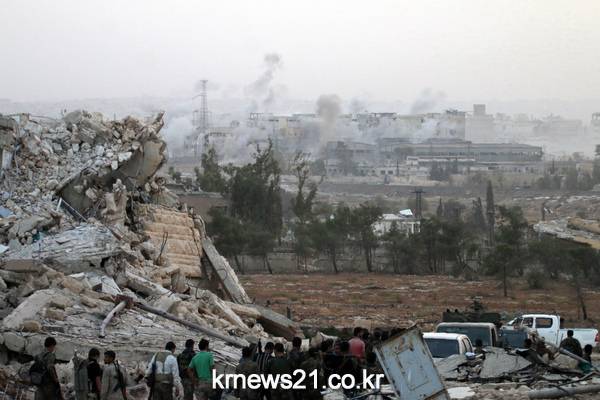 ▲ 2일(현지시간) 시리아 알레포의 킨디 병원(Kindi Hospital)이 정부군의 공습을 받아 연기가 피어 오르고 있다. GEORGE OURFALIAN / AFP[제공자ⓒ 뉴스21통신. 무단전재-재배포 금지.]3일(현지시간) 미국이 러시아와의 시리아 휴전을 위한 재개 협상을 중단한다고 선언했다.