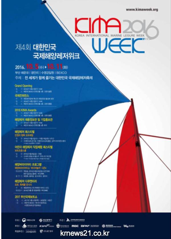 해양수산부는 5일부터 11일까지 부산 벡스코 및 해운대 일대에서 국내 최대 해양레저 축제인 ‘2016 대한민국 국제해양레저위크(이하 키마위크)’를 개최한다.