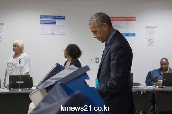 ▲ AFP / Jim Watson[제공자ⓒ 뉴스21통신. 무단전재-재배포 금지.]버락 오바마 미국 대통령이 7일(현지시간) 일리노이 주(州) 시카고 쿡카운티 투표소에서 대선 조기투표를 했다. 그는 투표 장소에 예고 없이 찾아간 것으로 알려졌다.
